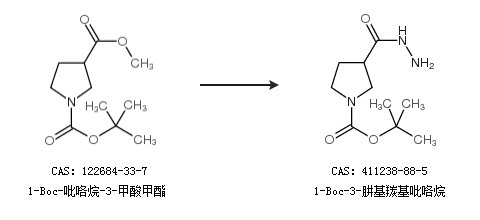 1.通過1-Boc-吡咯烷-3-甲酸甲酯合成1-Boc-3-肼基羰基吡咯烷
