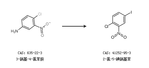2.通過(guò)3-硝基-4-氯苯胺合成2-氯-5-碘硝基苯