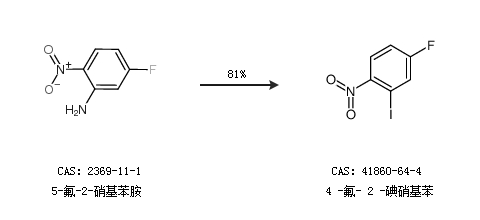 1.通過5-氟-2-硝基苯胺合成4 -氟- 2 -碘硝基苯,收率約81%;