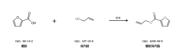 1.通過糠酸和烯丙醇合成糠酸烯丙酯,收率約81%;
