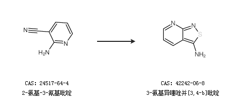 1.通過(guò)2-氨基-3-氰基吡啶合成3-氨基異噻唑并[3,4-b]吡啶