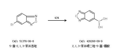 1.通過(guò)5-溴-2,1,3-苯并惡唑合成2,1,3-苯并噁二唑-5-基-硼酸,收率約43%;