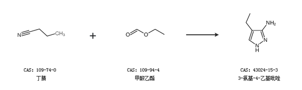 1.通過丁腈和甲酸乙酯合成3-氨基-4-乙基吡唑