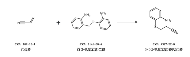 2.通過丙烯腈和雙(2-氨基苯基)二硫合成3-[(2-氨基苯基)硫代]丙腈