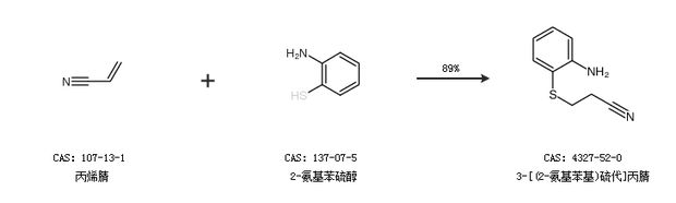 1.通過丙烯腈和2-氨基苯硫醇合成3-[(2-氨基苯基)硫代]丙腈,收率約89%;