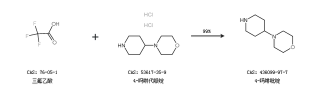 1.通過三氟乙酸和4-嗎啉代哌啶合成4-嗎啉吡啶,收率約99%;