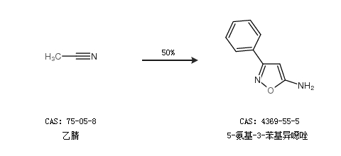 2.通過(guò)乙腈合成5-氨基-3-苯基異噁唑,收率約50%;