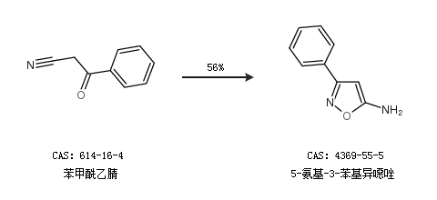 1.通過(guò)苯甲酰乙腈合成5-氨基-3-苯基異噁唑,收率約56%;