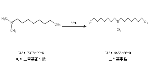 1.通過N,N-二甲基正辛胺合成二辛基甲胺,收率約86%;