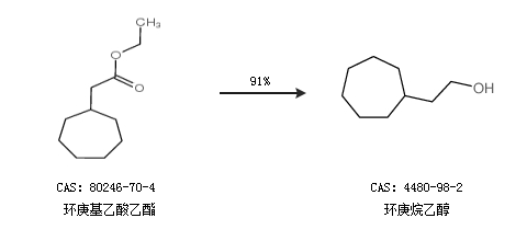 2.通過環(huán)庚基乙酸乙酯合成環(huán)庚烷乙醇,收率約91%;