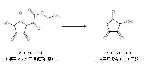 1.通過(3-甲基-2,4,5-三氧代環(huán)戊基)(氧代)乙酸乙酯合成3-甲基環(huán)戊烷-1,2,4-三酮