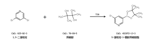 1.通過3,5-二溴吡啶和頻哪醇合成5-溴吡啶-3-硼酸頻哪醇酯,收率約73%;