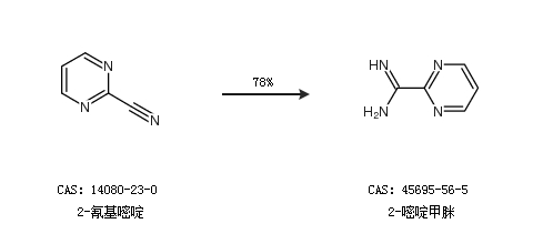 1.通過2-氰基嘧啶合成2-嘧啶甲脒,收率約78%;