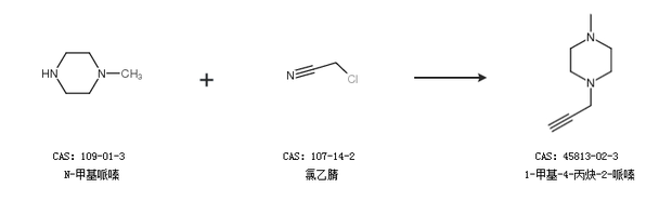 1.通過N-甲基哌嗪和3-溴丙炔合成1-甲基-4-丙炔-2-哌嗪,收率約83%;