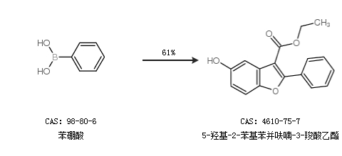2.通過(guò)苯硼酸合成5-羥基-2-苯基苯并呋喃-3-羧酸乙酯,收率約61%;