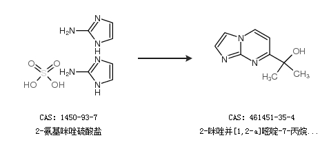 2.通過(guò)2-氨基咪唑硫酸鹽合成2-咪唑并[1,2-a]嘧啶-7-丙烷-2-醇