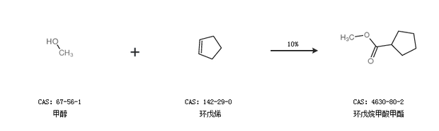 2.通過甲醇和環(huán)戊烯合成環(huán)戊烷甲酸甲酯,收率約10%;