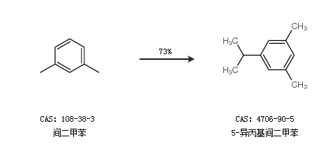 1.通過間二甲苯合成5-異丙基間二甲苯,收率約73%;