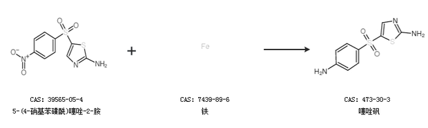 2.通過5-(4-硝基苯磺酰)噻唑-2-胺和鐵合成噻唑砜