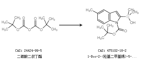 2.通過二碳酸二叔丁酯合成1-Boc-2-(羥基二甲基錫)-5-甲基吲哚
