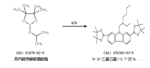 1.通過異丙醇頻哪醇硼酸酯合成9-(2-乙基己基)-2,7-雙(4,4,5,5-四甲基-1,3,2-二噁硼烷-2-基)-9h-咔唑,收率約42%;