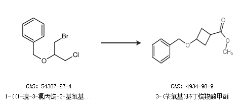 2.通過(guò)1-((1-溴-3-氯丙烷-2-基氧基)甲基)苯合成3-(芐氧基)環(huán)丁烷羧酸甲酯