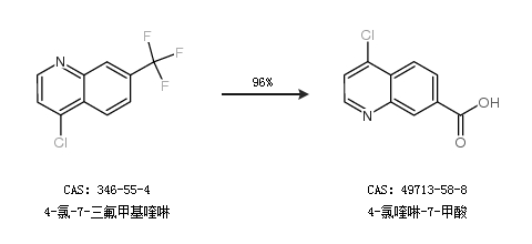 1.通過4-氯-7-三氟甲基喹啉合成4-氯喹啉-7-甲酸,收率約96%;