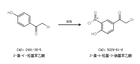 1.通過2-溴-4''-羥基苯乙酮合成2-溴-4-羥基-3-硝基苯乙酮,收率約90%;