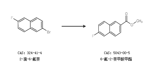 1.通過2-溴-6-氟萘合成6-氟-2-萘甲酸甲酯