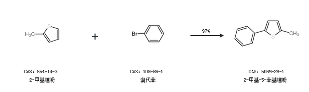 1.通過2-甲基噻吩和溴代苯合成2-甲基-5-苯基噻吩,收率約97%;