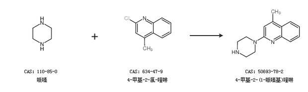 1.通過哌嗪和4-甲基-2-氯-喹啉合成4-甲基-2-(1-哌嗪基)喹啉