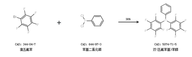 1.通過溴五氟苯和苯基二氯化磷合成雙(五氟苯基)苯膦,收率約38%;