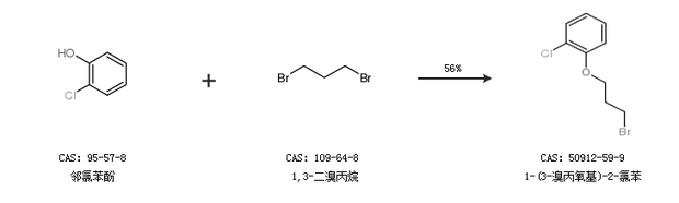 1.通過鄰氯苯酚和1,3-二溴丙烷合成1-(3-溴丙氧基)-2-氯苯,收率約56%;