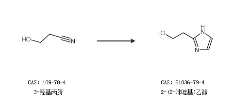 1.通過(guò)3-羥基丙腈合成2-(2-咪唑基)乙醇