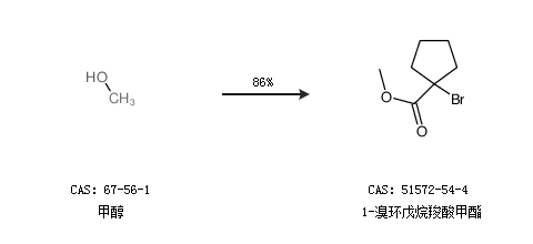 1.通過甲醇合成1-溴環(huán)戊烷羧酸甲酯,收率約86%;