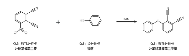 1.通過3-硝基鄰苯二腈和硫酚合成3-苯硫基鄰苯二甲腈,收率約83%;
