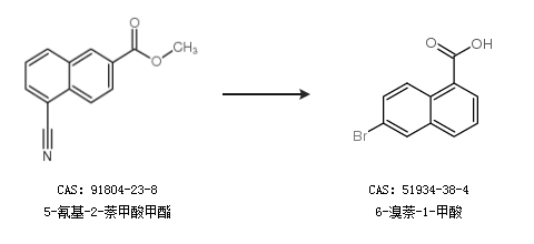 2.通過5-氰基-2-萘甲酸甲酯合成6-溴萘-1-甲酸