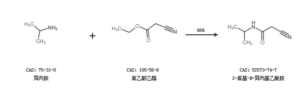 2.通過異丙胺和氰乙酸乙酯合成2-氰基-N-異丙基乙酰胺,收率約98%;
