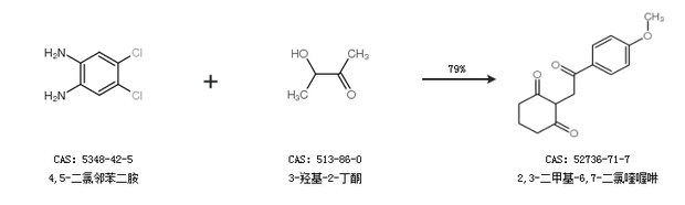 1.通過(guò)4,5-二氯鄰苯二胺和3-羥基-2-丁酮合成2,3-二甲基-6,7-二氯喹喔啉,收率約79%;