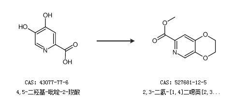 2.通過(guò)4,5-二羥基-吡啶-2-羧酸合成2,3-二氫-[1,4]二噁英[2,3-c]吡啶-7-羧酸甲酯