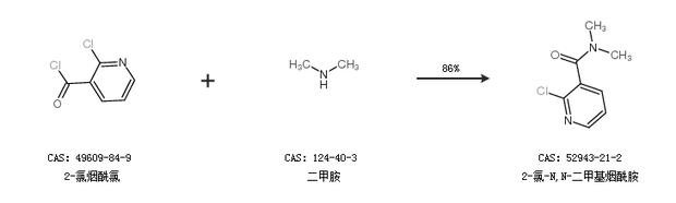 2.通過2-氯煙酰氯和二甲胺合成2-氯-N,N-二甲基煙酰胺,收率約86%;