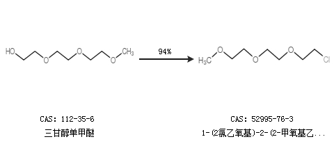 1.通過三甘醇單甲醚合成1-(2氯乙氧基)-2-(2-甲氧基乙氧基)乙烷,收率約94%;