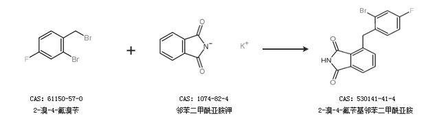 1.通過2-溴-4-氟溴芐和鄰苯二甲酰亞胺鉀合成2-溴-4-氟芐基鄰苯二甲酰亞胺