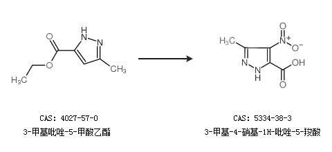 1.通過3-甲基吡唑-5-甲酸乙酯合成3-甲基-4-硝基-1H-吡唑-5-羧酸