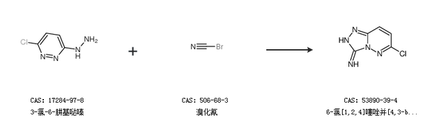 2.通過3-氯-6-肼基噠嗪和溴化氰合成6-氯[1,2,4]噻唑并[4,3-b]吡嗪-3-胺