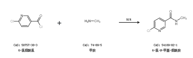 1.通過6-氯煙酰氯和甲胺合成6-氯-N-甲基-煙酰胺,收率約91%;