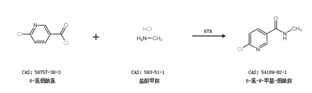 2.通過6-氯煙酰氯和鹽酸甲胺合成6-氯-N-甲基-煙酰胺,收率約67%;