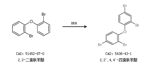 1.通過(guò)2,2-二溴聯(lián)苯醚合成2,2'',4,4''-四溴聯(lián)苯醚,收率約86%;