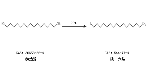1.通過鯨蠟醇合成碘十六烷,收率約99%;