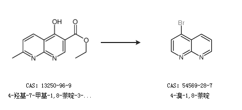 1.通過4-羥基-7-甲基-1,8-萘啶-3-羧酸乙酯合成4-溴-1,8-萘啶